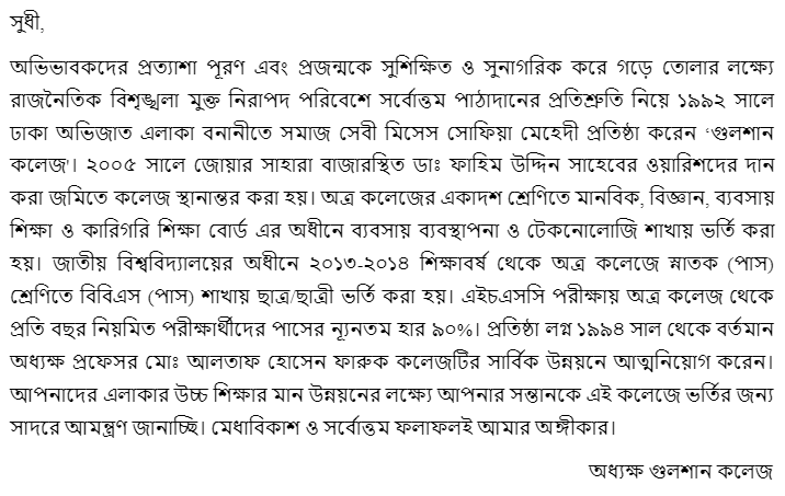 Email: gulshancollege6609@yahoo.com, Phone: +880 1721-331077